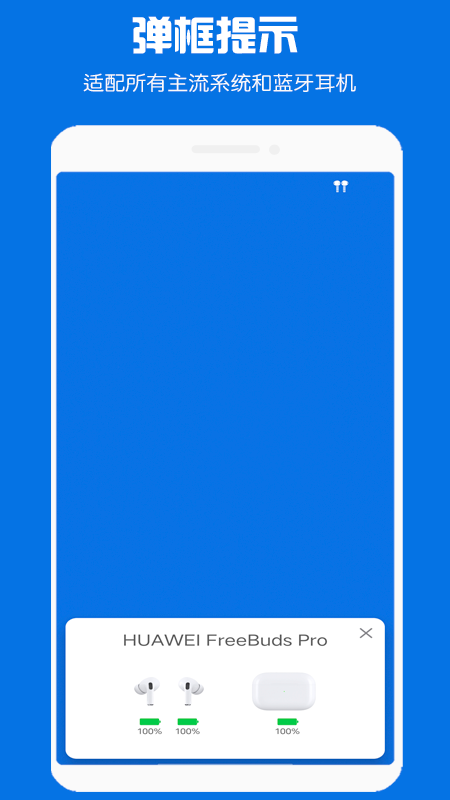 可通过弹框、toast提示、通知栏提示等方式提示蓝牙耳机的链接状态和电量变动情况。及时准确,方便快捷。弹框展示动画流畅,信息准确,可弥补蓝牙耳机不能弹框的遗憾。